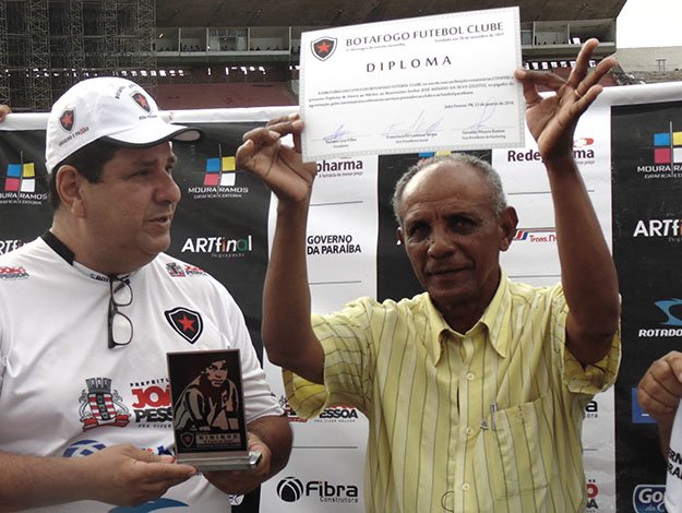 O lateral esquerdo do fim dos anos 1960 e início dos anos 1970 que vestiu a camisa do Botafogo e sagrou-se tricampeão com a equipe foi o grande homenageado da tarde deste domingo (02). Pouco antes do início da partida entre Botafogo e Guarany/CE, a torcida pôde acompanhar de perto a condecoração entregue a Zezito, no Estádio José Américo de Almeida, O Almeidão.