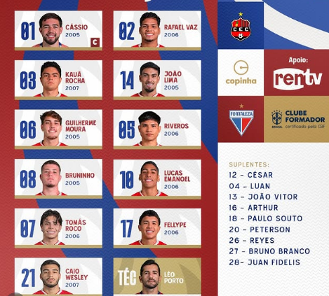 Antes, o Fortaleza-CE abriu uma vantagem de 3 a 0, com Lucas Emanoel aos sete minutos da etapa inicial. Caio Wesley fez 2 a 0 aos 17 minutos e Kauã Rocha fez o terceiro gol tricolor aos 21 minutos.