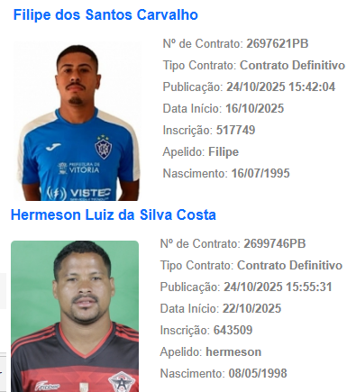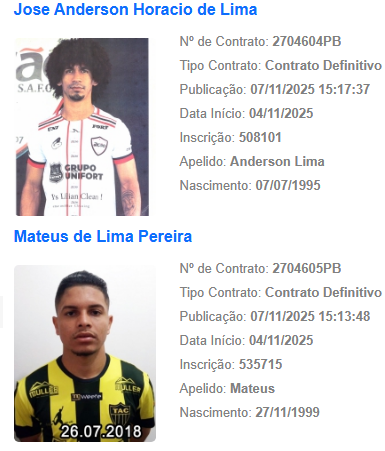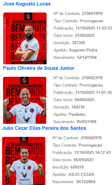 O Confiança de Sapé conta com 13 jogadores para as disputas do Campeonato Paraibano da Primeira Divisão de 2025. Todos registrados no Boletim Informativo Diário da CBF. São algumas contratações, mas na maioria é prorrogação de contrato.