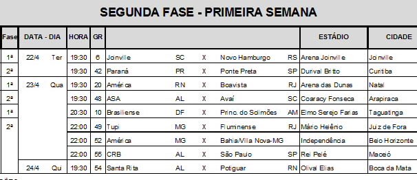 A Diretoria de Competições da CBF divulga a tabela da Copa do Brasil 2014 com a realização dos jogos em datas pós-feriados.