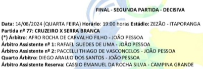 Decisão do Campeonato Paraibano Sub-20 aconteceu nesta quarta-feira (14), às 19h, entre Cruzeiro de Itaporanga 1×0 Serra Branca, no estádio Zezão, na cidade de Itaporanga, Sertão do Estado.