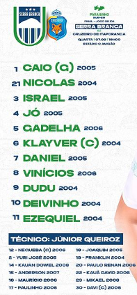 Fim de jogo no Estádio Amigão. Na decisão de 180 minutos do Campeonato Paraibano Sub-20, o Serra Branca perdeu a primeira partida para o Cruzeiro de Itaporanga pelo placar de 2 a 0, na noite desta quarta-feira (7), em Campina Grande. Os gols foram marcados por Sousa e João Victor.
