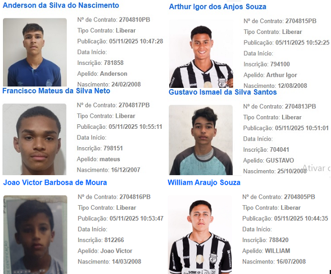 O Boletim Informativo Diário (BID) da CBF divulgou nesta quarta-feira uma relação de seis jogadores liberados pelo Cruzeiro de Itaporanga. Eles disputaram o Campeonato Paraibano da Segunda Divisão de 2025 emprestados pelo Treze.
