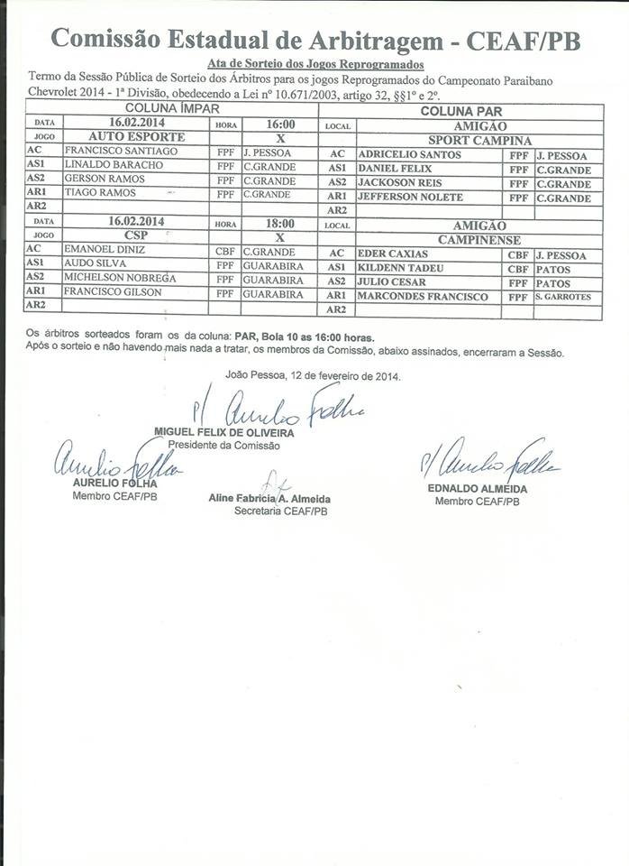 Definidos os árbitros para a rodada deste final de semana envolvendo Auto Esporte x Sport Campina; CSP x Campinense será disputado no estádio Almeidão. Adricelio Santos apita a primeira partida e Eder Caxias (foto) comanda o jogo principal, de acordo com a escala.