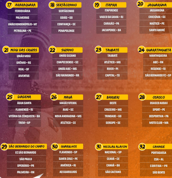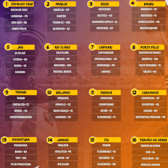 Enquanto que, o Confiança atuará contra Capivariano-SP, Internacional-RS e Linense-SP, no Grupo 7.
