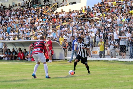 O primeiro tempo começou como já era de se esperar, um jogo apertado e cheio de expectativas. O Treze foi fazendo as suas jogadas e ameaçando de marcar pela esquerda do gol do adversário. Um dos lances de tirar o fôlego foi quando Leanderson recebeu a bola trabalhada pela esquerda e chutou forte contra o gol rubro-negro, mas a bola passou por cima raspando a trave. Após sofrer o gol o Treze continuou atuando pela esquerda, principalmente com as boas jogadas de Fernandes.