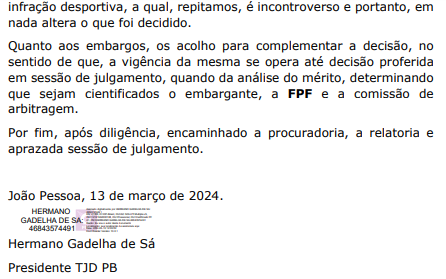 Veja a peça da decisão do presidente do TJDF-PB, Hermano Gadelha de Sá.