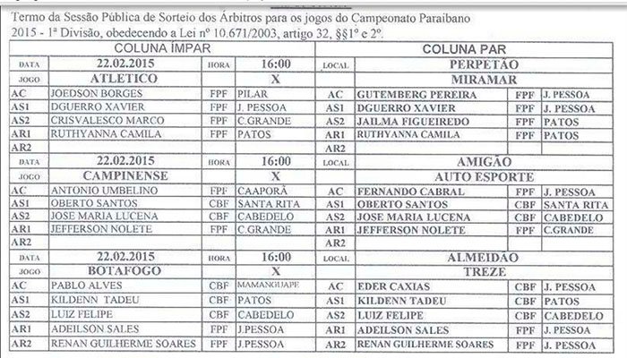 O árbitro Eder Caxias é quem vai comandar o primeiro clássico tradição de 2015, envolvendo Botafogo e Treze, domingo, às 16h, no estádio Almeidão, em João Pessoa. O encontro tem validade pela primeira fase do Campeonato Paraibano da temporada. A rodada ainda tem Campinense e Auto Esporte, no Amigão, com apito de Fernando Cabral. Enquanto que, o Atlético recebe o Miramar, no Perpetão e o árbitro é Gutemberg Pereira.