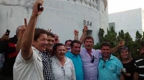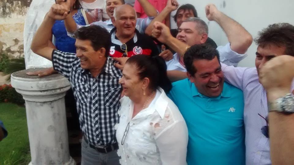 Amadeu Rodrigues e Nosman Barreiro comemora a vitória a presidente da FPF, ao lado da ex-presidente Rosilene Gomes e seus colecionados.