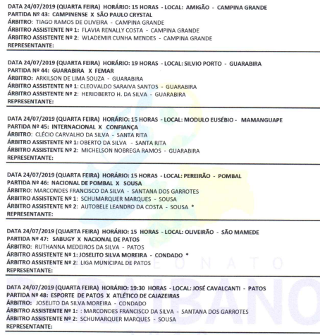 A terceira rodada do Campeonato Paraibano de Futebol, categoria 19, programa para esta quarta-feira, 12 partidas, confirme escala de arbitragem que você confere aqui no www.soesporte.com.br e na RADIO SOESPORTE