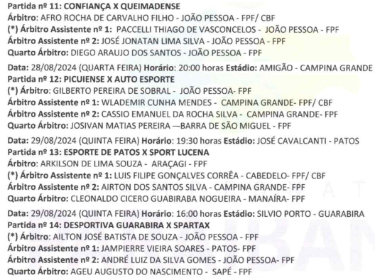 A escala dos árbitros da terceira rodada da Segunda Divisão do Campeonato Paraibano, com os quatro jogos programados para este meio de semana. Duas partidas acontecem nesta quarta-feira (28) e mais dois jogos serão realizados na quinta-feira (29).