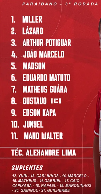 - Quarto árbitro: Diego Roberto Souza de Melo