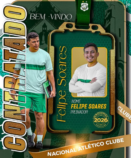 O Verdão Maravilha tem um novo comandante para a temporada 2026. Felipe Soares é o técnico que vai estar à frente do Nacional de Patos no Campeonato Paraibano da Primeira Divisão.