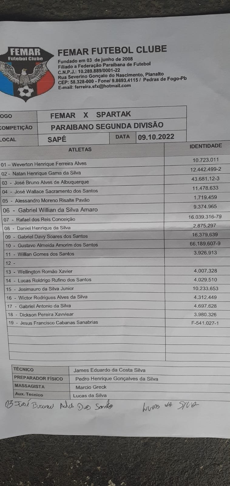 O Femar teve dois expulsos, ainda no primeiro tempo. Receberam cartão vermelho o auxiliar técnico, Lucas e o atletas Gabriel Antônio.