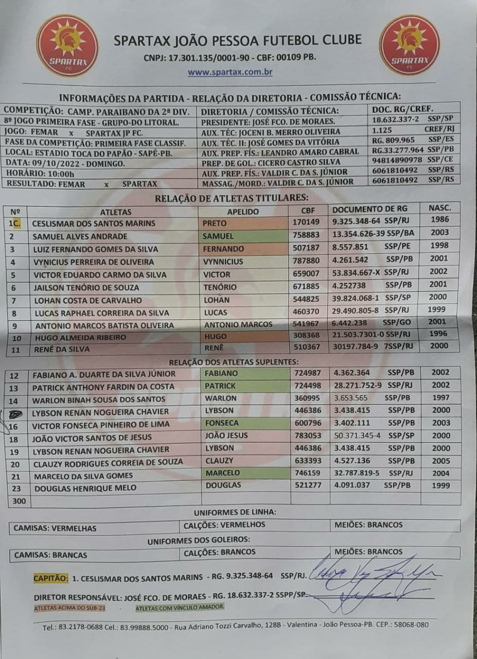 A rodada deste domingo (9) na Segunda Divisão do Campeonato Paraibano começou com Femar 1×0 Spartax, acompanhe. Jogo disputado no estádio Toca do Papão, às 10h, em Sapé. O Femar fez 1 a 0, através do atacante Willian Gomes, nos minutos finais da partida.
