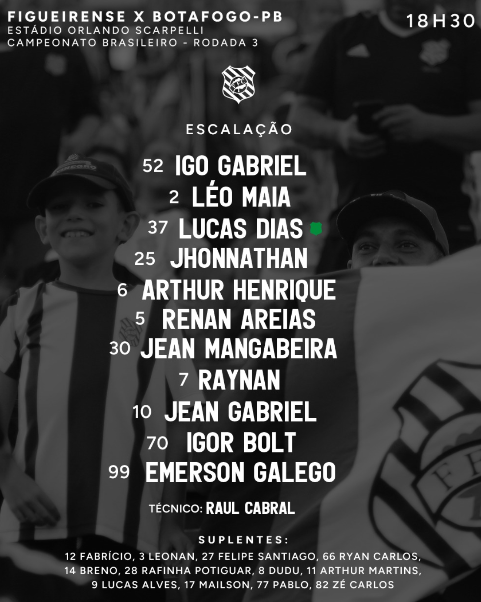 Figueirense e Botafogo-PB se enfrentam neste domingo (19/04), às 18h30, pela 3ª rodada da Série C do Campeonato Brasileiro 2026. O jogo será disputado no estádio Orlando Scarpelli, em Florianópolis.