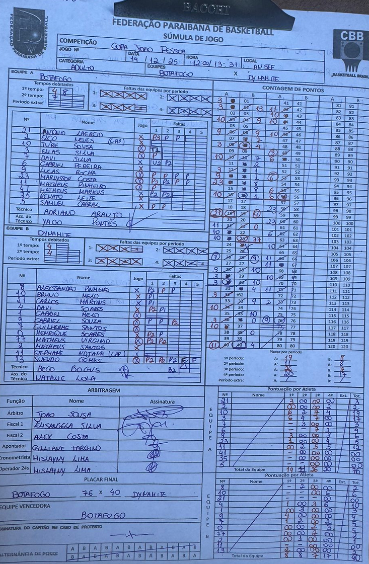 O Campeonato Paraibano de Basquete Masculino termina com confusão, neste domingo, no ginásio da Ansef, com presença mais uma vez da Polícia Militar, para colocar ordem no recinto. Pior para o Dynamite, que teve dois desfalques no seu time, e o Botafogo-PB aproveitou para ficar com o primeiro lugar, vencendo por 76 a 40.