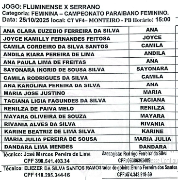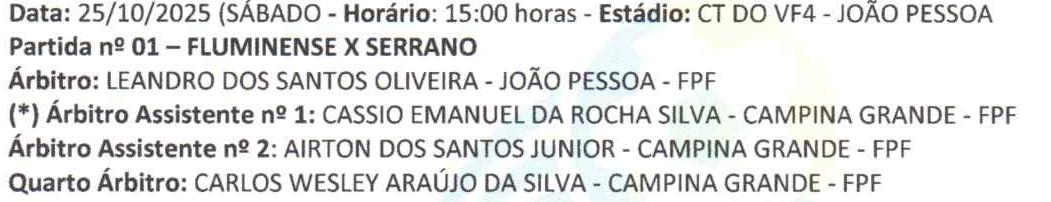 Na partida de abertura do Campeonato Paraibano de Futebol Feminino Adulto de 2025 deu empate de 1 a 1, entre Fluminense e Grêmio Serrano. O jogo aconteceu neste sábado (24), no CT do VF4, às 15h00.