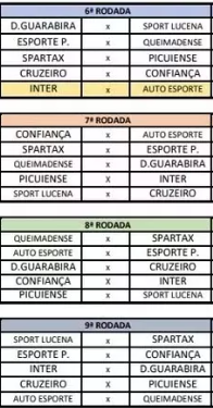 A primeira rodada, de acordo com a tabela divulgada incialmente deve ser formada pelos seguintes jogos: Auto Esporte x Sport Lucena, Confiança de Sapé x Spartax, Esporte de Patos x Cruzeiro de Itaporanga, Internacional x Queimadense, Picuiense x Desportiva Guarabira.