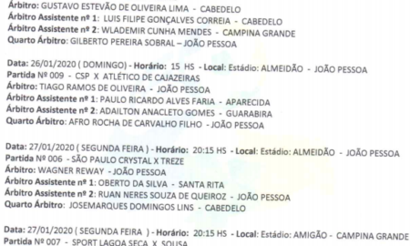 A Federação Paraibana de Futebol divulgou os locais e horários dos jogos da segunda rodada, encaminhando aviso aos clubes participantes do Campeonato...