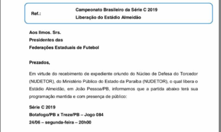 A Confederação Brasileira de Futebol liberou a presença de público para o jogo entre Botafogo e Treze, marcado para segunda-feira, às 20h,...