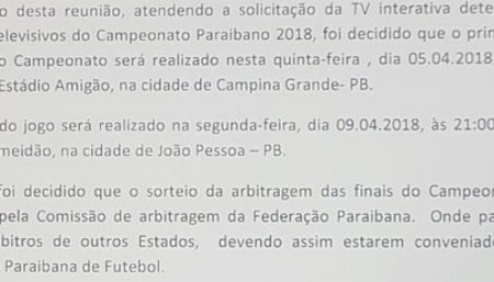 As duas partidas entre Campinense e Botafogo acontecem na quinta-feira, dia 5; e segunda-feira dia 9, de acordo com comunicado da Federação Paraibana...