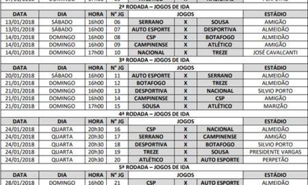 A tabela do Campeonato Paraibano da Primeira Divisão de 2018 foi divulgada pelo departamento técnico da Federação Paraibana de Futebol com estádios,...