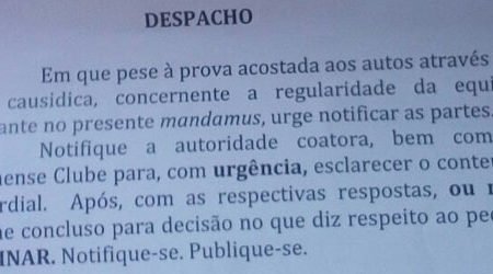 O mandado de garantia com pedido de liminar já está sendo estudado pelo presidente do Tribunal de Justiça Desportiva de Futebol da...