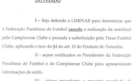 O presidente do Tribunal de Justiça Desportiva de Futebol da Paraíba, Lionaldo Santos Silva, deu o despacho nesta sexta-feira.