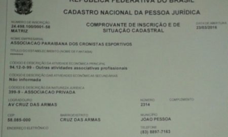 A Associação Paraibana dos Cronistas Esportivos é uma realidade de acordo com seu CNPJ registrado e conhecido nacionalmente. O presidente Elialdo Silva...