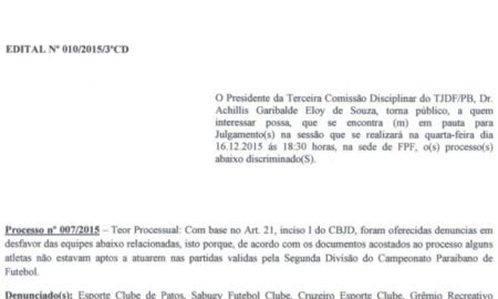 O resurso do Nacional de Patos entrará em pauta nesta quarta-feira, no Tribunal de Justiça Desportiva de Futebol da Paraíba. Está é a...