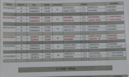 Dois jogos completam a terceira rodada do estadual, neste domingo, no CT Ivan Tomaz. Confira: 15h30 Kashima X Botafogo 17h30 Santos/ Pé...