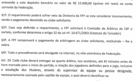 O artigo 28 do regulamento do Campeonato Paraibano de 2015 condiciona solicitação de árbitros de fora, determinando que o clube solicitante precisa...