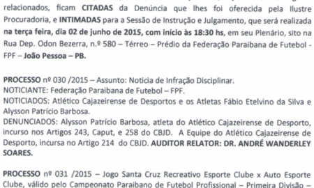 Em reunião realizada nesta segunda-feira à noite, no Tribunal de Justiça Desportiva da Paraíba o Atlético de Cajazeiras foi multado em R$ 500,00....