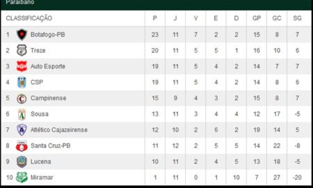 O Campeonato Paraibano 2015 primeira fase tem o Botafogo como líder isolado com 23 pontos ganhos. O Treze se manteve na segunda...