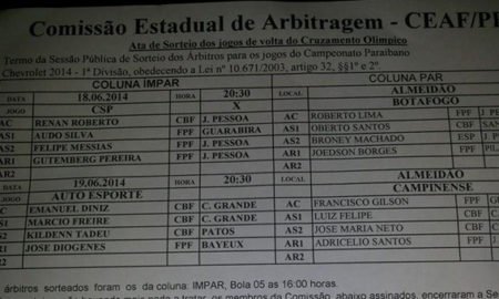 Renan Roberto apita CSP x Botafogo, nesta quarta-feira. Enquanto que, Emanuel Diniz comanda Auto Esporte x Campinense, na quinta-feira. Os dois jogos...