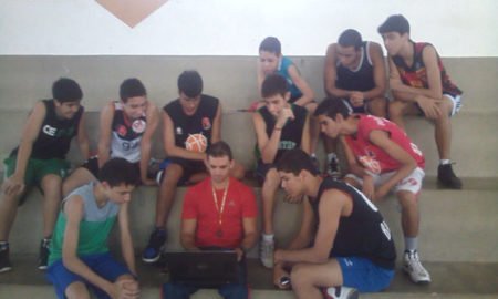 Enquanto o professor Ricardo comandava os primeiros treinos para as meninas trabalhando os fundamentos, o professor Flávio Eduardo mostrava aos meninos jogadas...