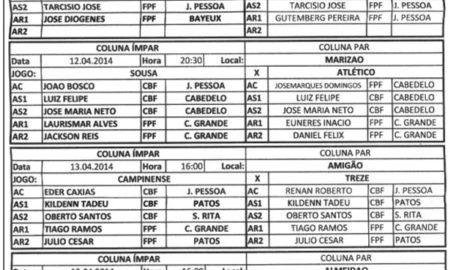 De acordo com a escala de arbitragem divulga pela assessoria de imprensa, a comissão estadual confirma Eder Caxias apita Treze x Campinense...