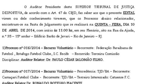 Campeonato Paraibano 2014 / Segundo Turno Sexta Rodada Domingo 06/04 Almeidão 17:00 Botafogo 3 x 2 Auto Esporte – A/C: João Bosco...