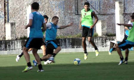 “Jogadores realizam mais um coletivo em preparação para jogo contra Atlético de Pontegi-RN Olhos voltados para o amistoso de amanhã...
