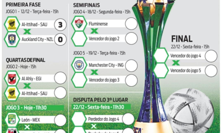 No caminho do Fluminense no Mundial de Clubes, o time do Al-Ahly, do Egito, venceu o Al-Ittihad, da Arábia Saudita, pelo placar de 3...