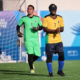 Jefinho está com as mãos juntas e gritando, parado no campo. Atrás dele, aparece o goleiro Luan. Foto: Miriam Jeske/CPB. Um dia...