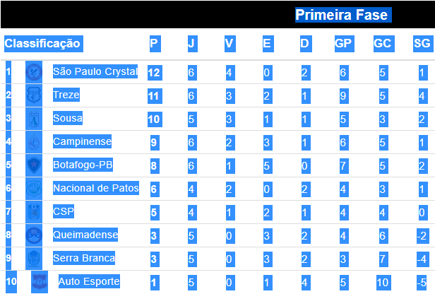 O time do Dino chegou perto dos dois primeiros colocados. O líder é o São Paulo-PB com 12 pontos. O Treze soma 11 pontos, como vice líder. O Sousa agora tem de pontos, na terceira colocação. O Campinense sona 9 pontos, na quarta posição.