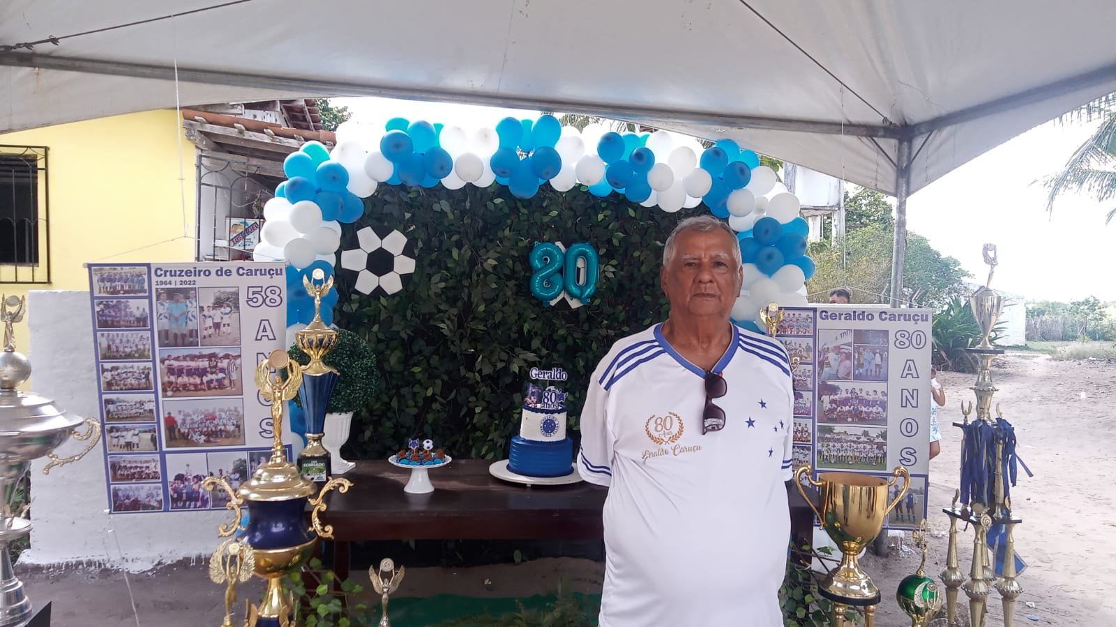 O desportista Geraldo Caruçu completou 80 anos e recebe amigos e ex-jogadores do Cruzeiro do Sítio Cabuçu, em festa de arromba. Para comemorar esta importante data foi montada uma mega estrutura, para comportar o número de visitantes.