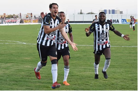Com dois gols nos 13 minutos iniciais do segundo tempo, o Treze venceu o Ferroviário CE, neste domingo à tarde, por 2 a 0, no estádio Presidente Vargas em Campina Grande. Eduardo fez o primeiro gol e Adriano Alves o segundo. Foto – Adriano Alves, Eduardo e Dija Baiano (ascom)