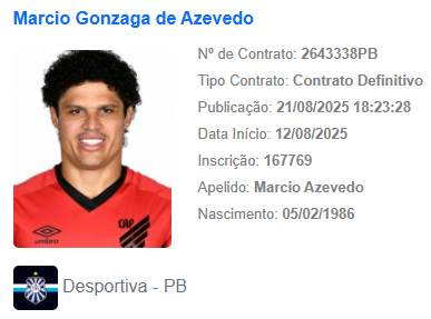 A Desportiva Guarabira apresenta o lateral-esquerdo Márcio Azevedo, 39 anos, que tem a experiência de ter passado por clubes como: ABC-RN, Atlético Paranaense, PAOK, Shakhtar Donetsk, Metalist, Botafogo-RJ e Fortaleza-CE.