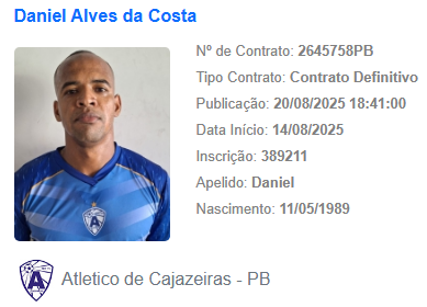 O Atlético de Cajazeiras tratou de reforçar o time no meio-campo e anunciou o meia Daniel Costa, que já defendeu uma série de clubes da Região, com passagem de destaque no Sousa e estava ultimamente no URT de Minais Gerais. Ele ainda defendeu outros clubes como Jataiense, Esporte de Patos e Pombal.