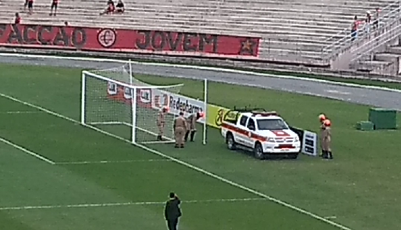 O árbitro da partida conversou com o capitão do Sousa e com o capitão do Campinense os dois concordaram com o início da parida mesmo com as abelhas. Só no intervalo é que o pessoal do Corpo de Bombeiros conseguiu retirar o exame.
