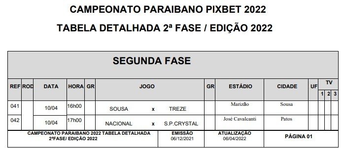 Fim da primeira fase do Campeonato Paraibano 2022, com os seis times classificados, como recomenda o regulamento. O Botafogo-PB terminou em primeiro lugar com 17 pontos, no Grupo A. O Campinense com 22 pontos é o líder do Grupo B.
