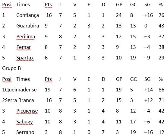 Neste domingo (9) depois de concluídos os últimos dois jogos da primeira fase. O Femar disputa vaga com o Spartax, às 10h. Enquanto que o Confiança de Sapé enfrenta a Desportiva Guarabira, às 15h, todas as partidas na Toca do Papão, em Sapé.